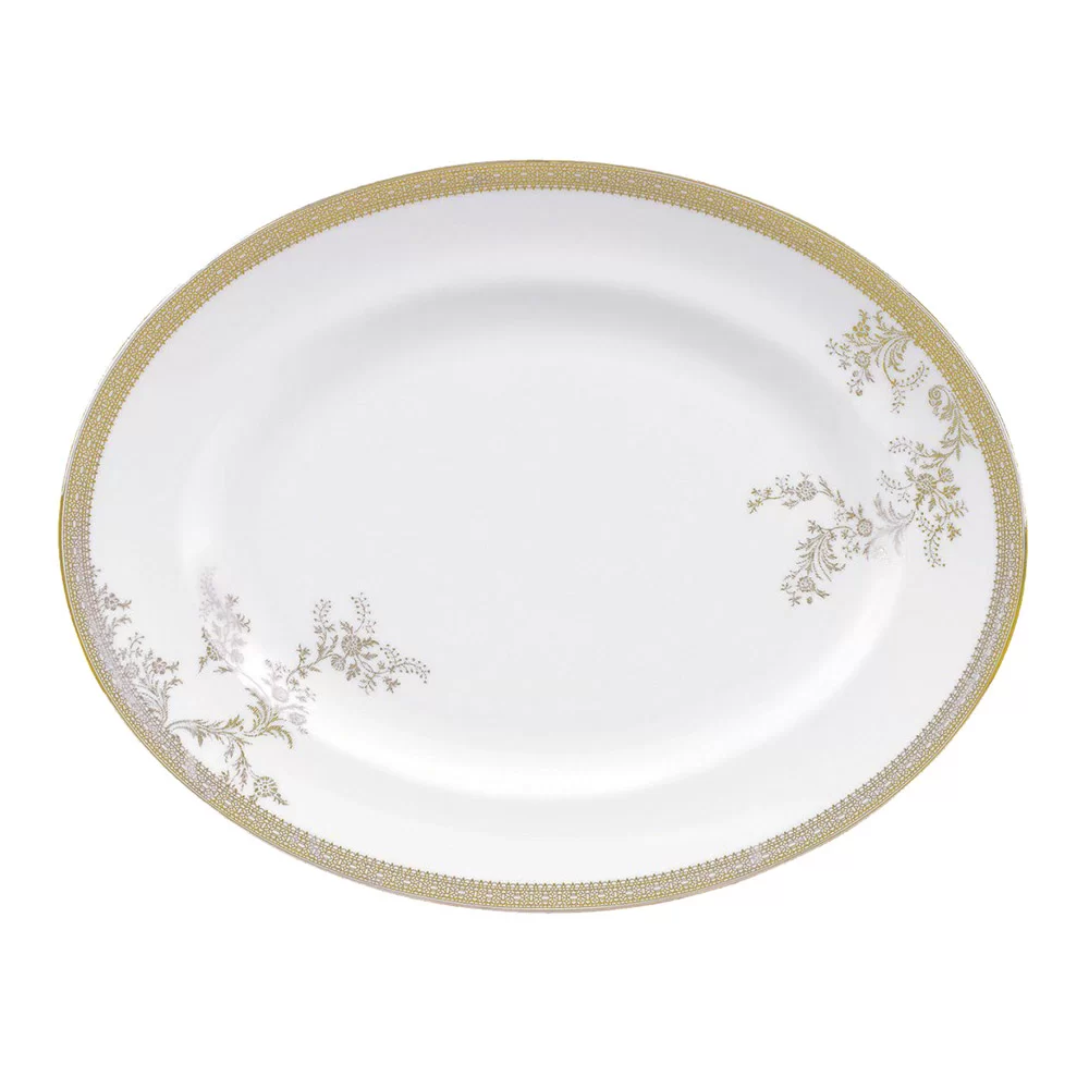 Блюдо овальное Vera Wang Lace Gold 35 см, материал фарфор, цвет белый Wedgwood, Великобритания, 50146903001