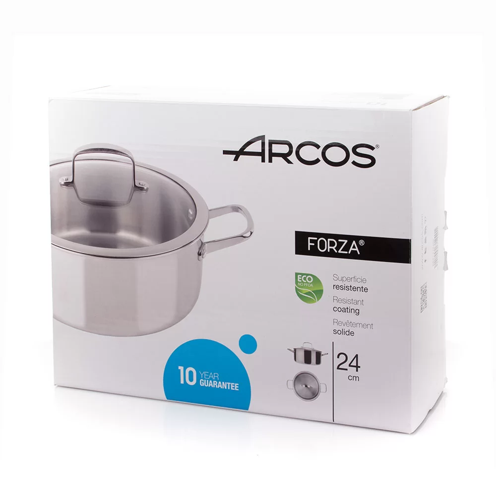 Кастрюля с крышкой 4 л 3-х слойная нержавеющая сталь, диаметр 24 см, серия Forza, Arcos, 712400