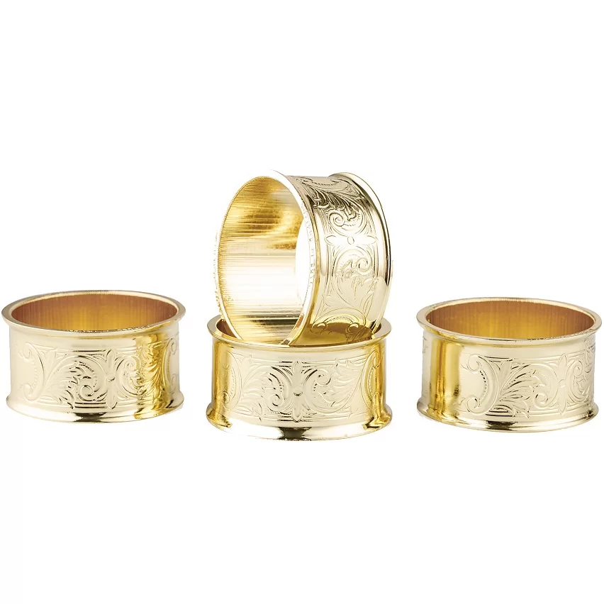 Набор из 4 колец для салфеток, диаметр 4,5 см, цвет золотой, нержавеющая сталь, Queen Anne, Великобритания, QA-4/902