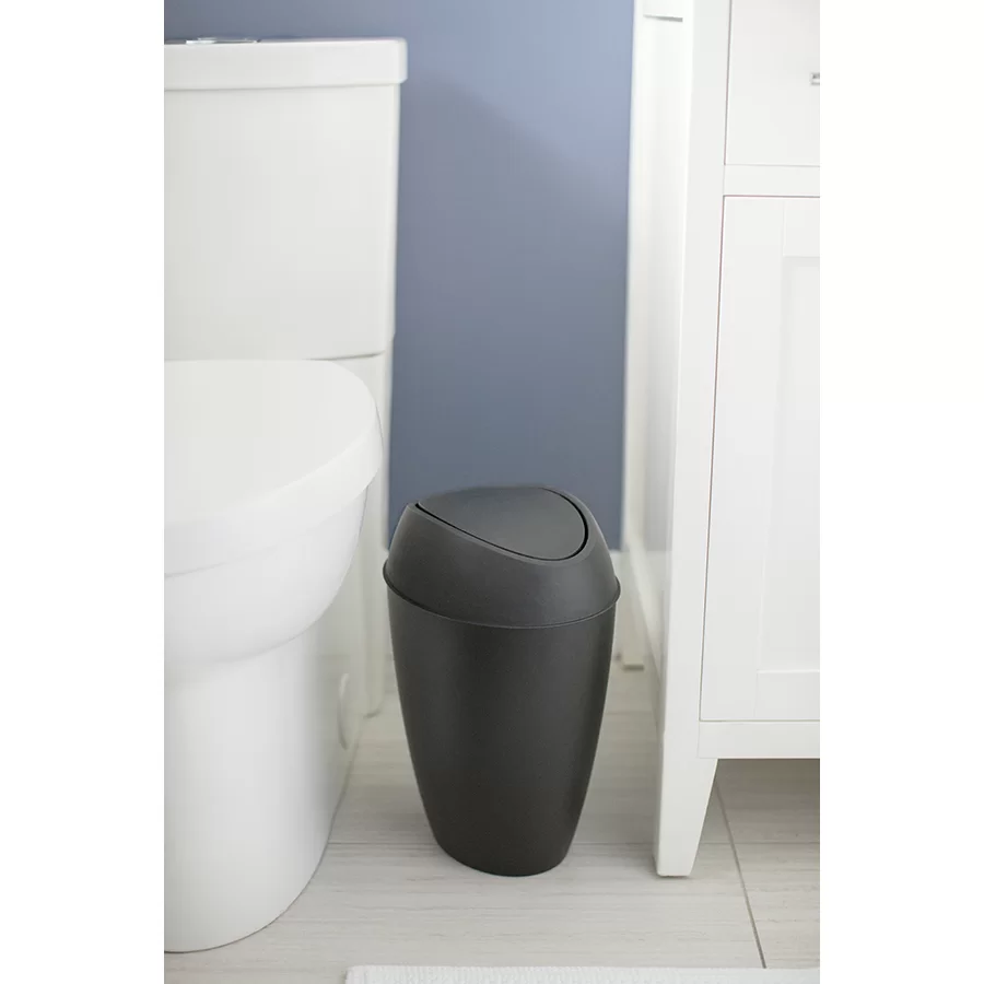Корзина для мусора с крышкой Twirla 9 л, 22x36x26 см, материал полипропилен, цвет черный, Umbra, Канада, 1012978-040