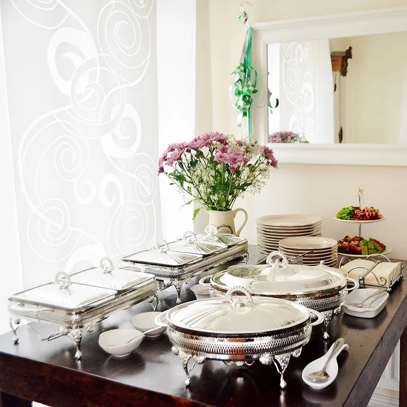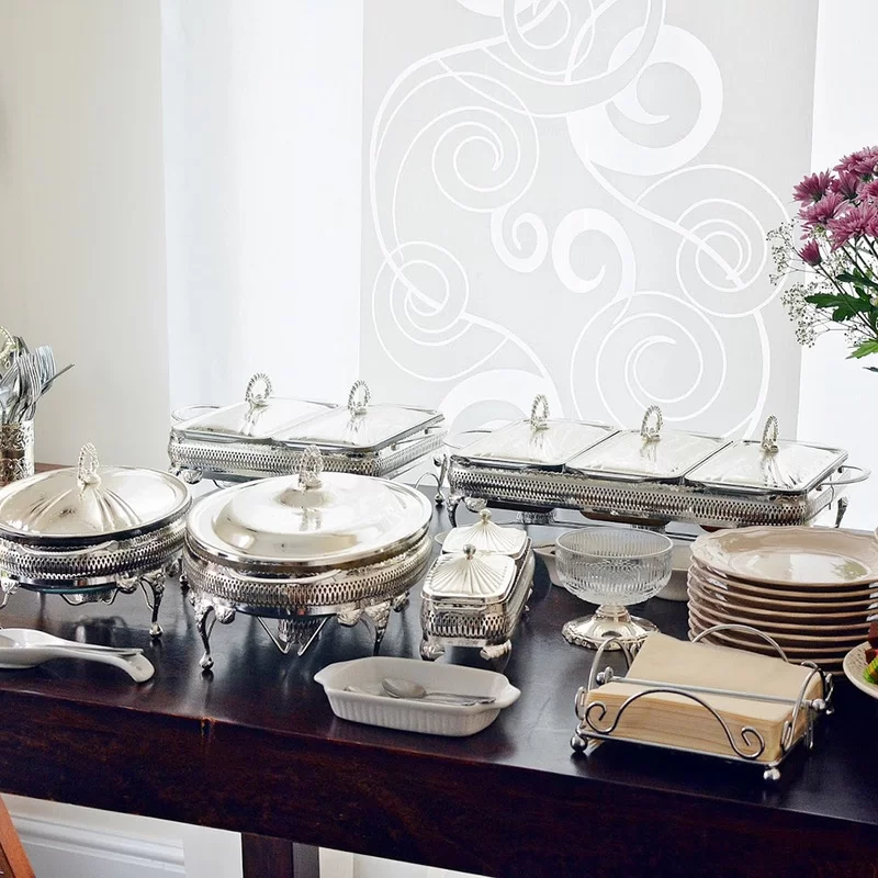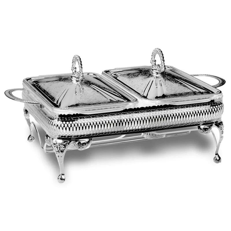 Мармит для 2-х блюд с крышками 41х28х19 см, нержавеющая сталь с посеребрением + стекло, Queen Anne, Великобритания, QA-0/6280