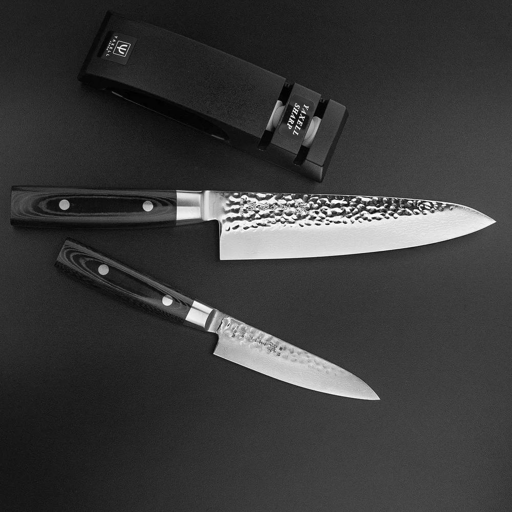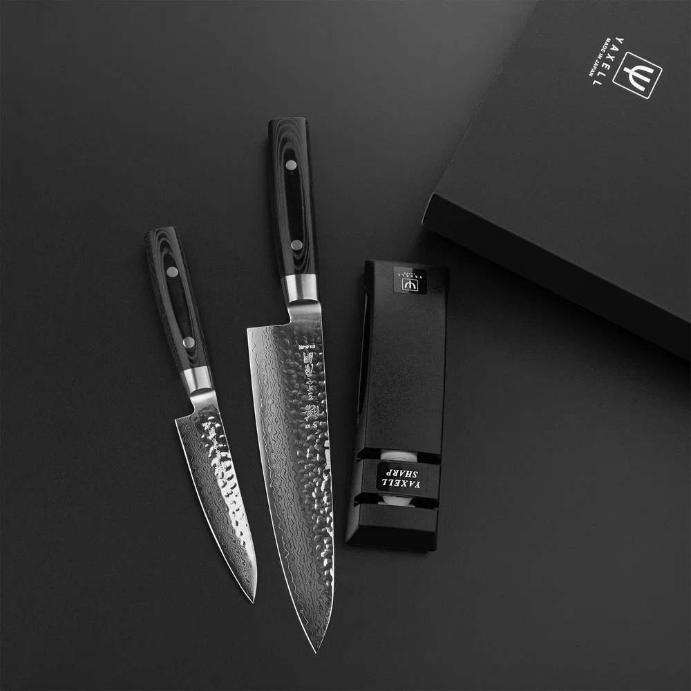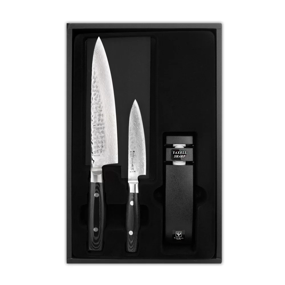Набор из 2-х кухонных ножей с точилкой ZEN, материал дамасская сталь, Yaxell, Япония, YA35500-003