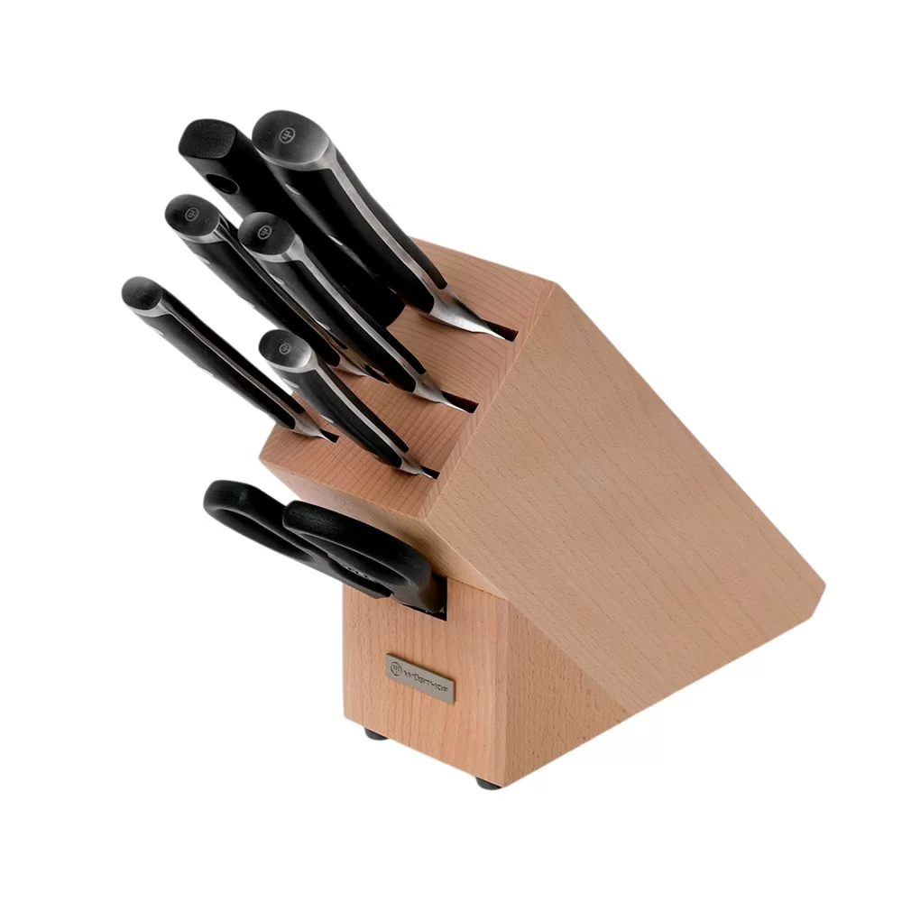 Набор из 5 кухонных ножей с мусатом и ножницами на деревянной подставке, сталь X50CRMOV15, Wuesthof, Германия, 1090370701