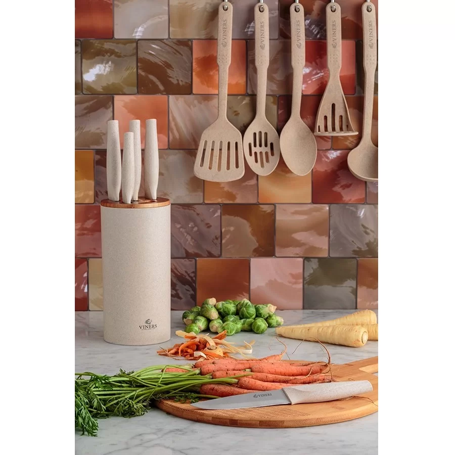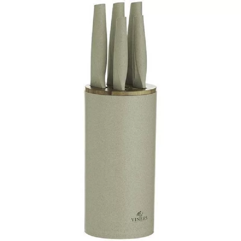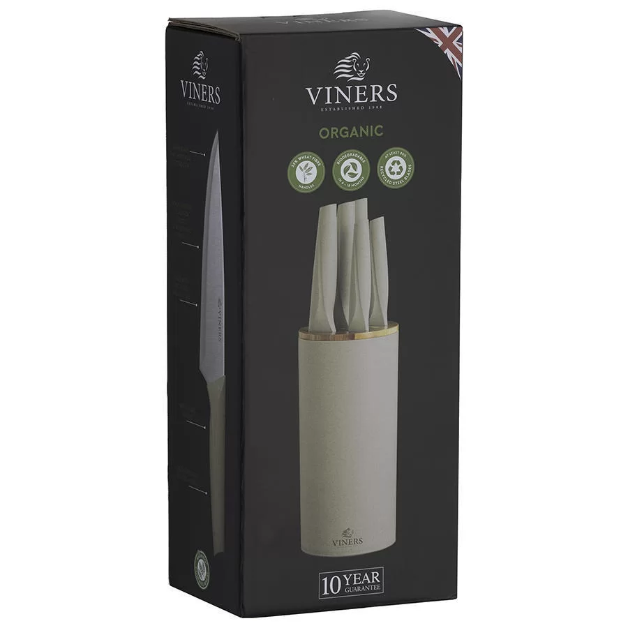 Набор из 5-ти кухонных ножей на подставке Organic нержавеющая сталь + полипропилен, цвет бежевый, Viners, Великобритания, v_0305.186