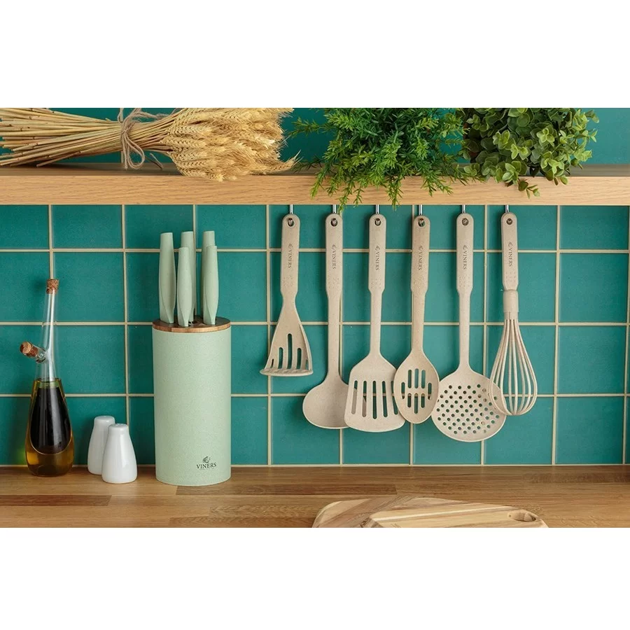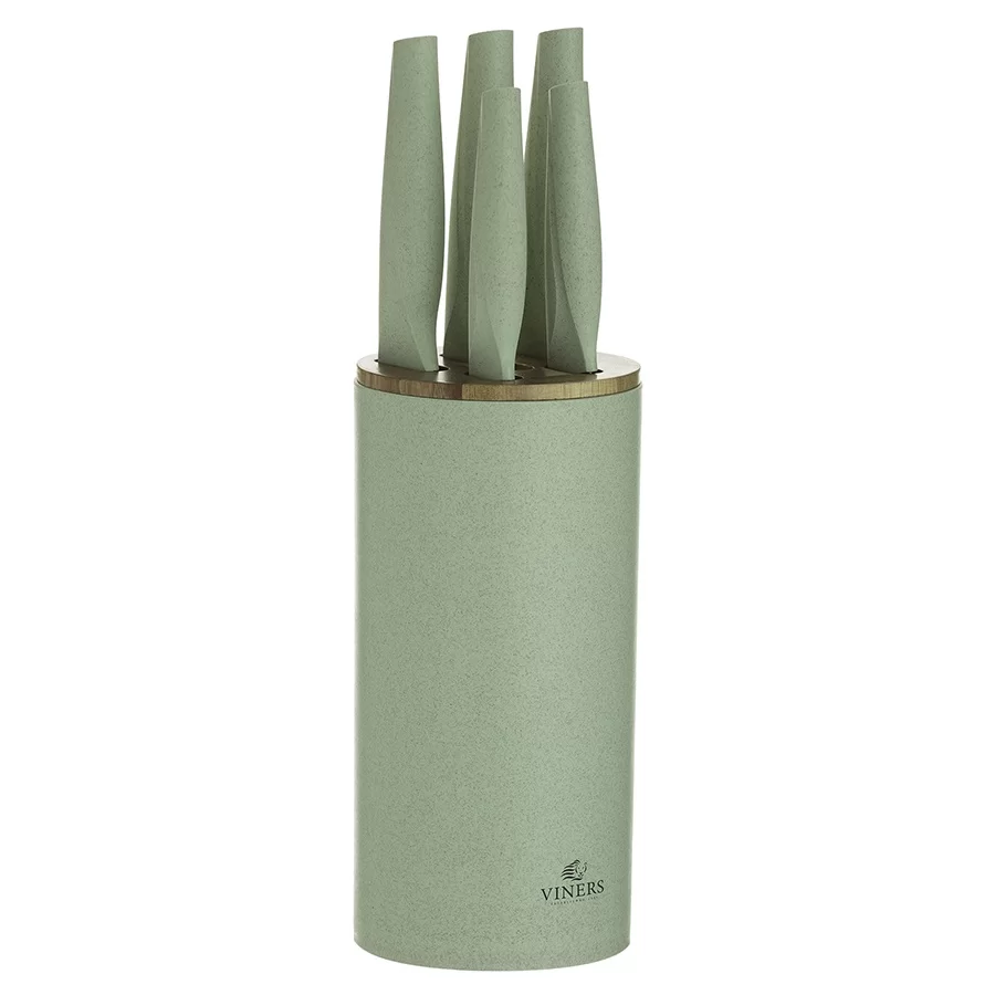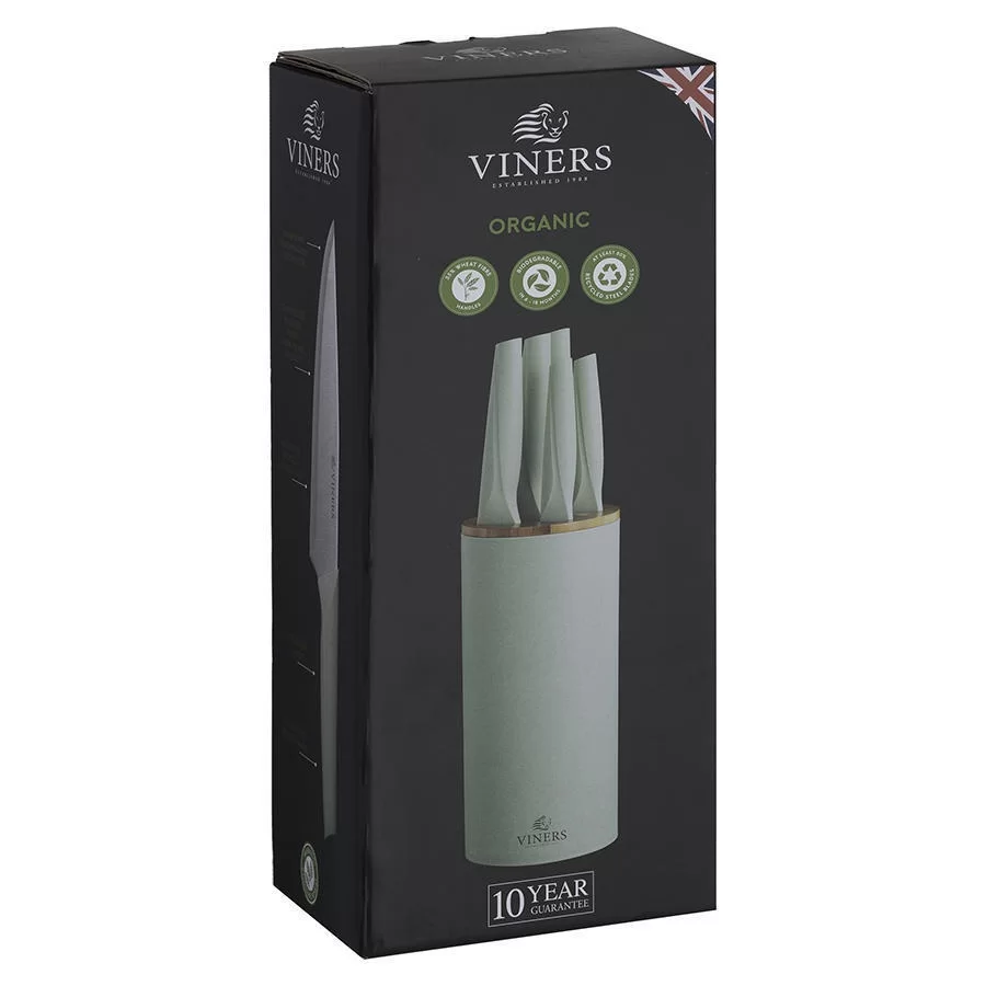 Набор из 5-ти кухонных ножей на подставке Organic нержавеющая сталь + полипропилен, цвет зеленый, Viners, Великобритания, v_0305.187