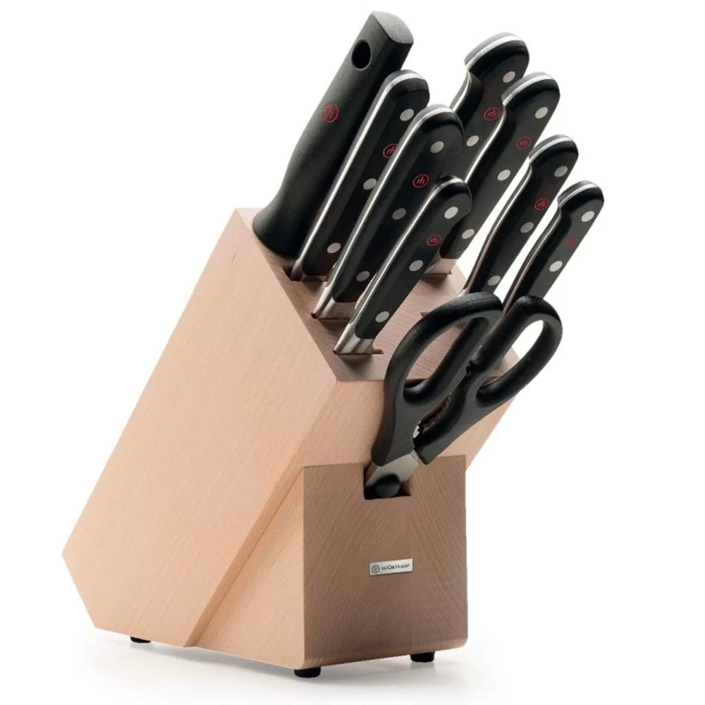 Набор из 6-ти кухонных ножей на подставке + мусат + вилка + ножницы, Wusthof, Германия, 9842