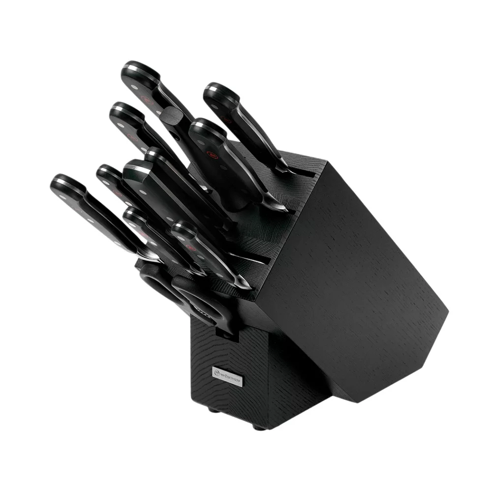 Набор из 9 кухонных ножей + ножницы+вилка+мусат на деревянной подставке, кованая сталь, Wusthof, Германия, 1090171204