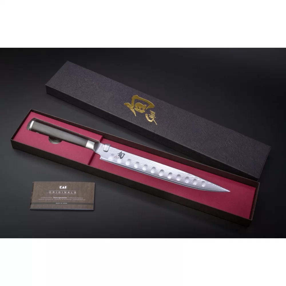 Нож кухонный для тонкой нарезки Hollow-Ground Sujihiki длина лезвия 24,1 см, сталь VG-MAX в обкладках из дамаска, Kai, Япония, DM-0720