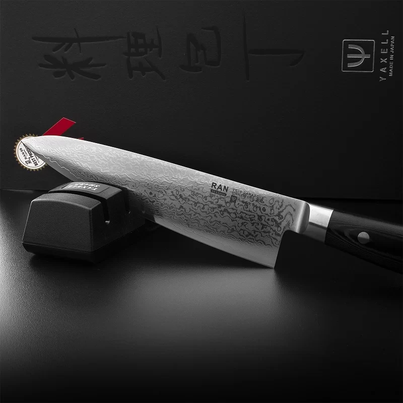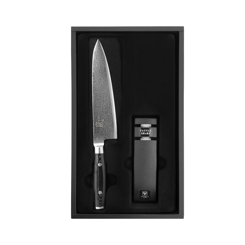 Набор из поварского шеф-ножа с точилкой, длина лезвия 20 см, дамасская сталь, Yaxell, Япония, YA36000-002