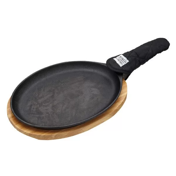 Сковорода с подставкой World of Flavours, диаметр 20 см, цвет черный, чугун + дерево, Kitchen Craft, Великобритания, WFMXSIZZLE