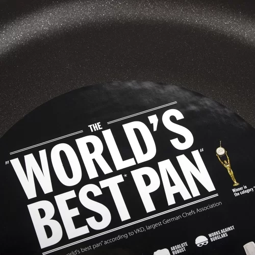 Сотейник из литого алюминия с уникальным антипригарным покрытием с алюминиево-титановыми оксидами. Тщательно отшлифован, не требует специального ухода, оснащен двумя фиксированными ручками. После приготовления следует просто удалить сухой бумажной салфеткой остатки масла или продуктов и вымыть теплой водой с мягкой губкой, при необходимости можно использовать жидкое моющее.