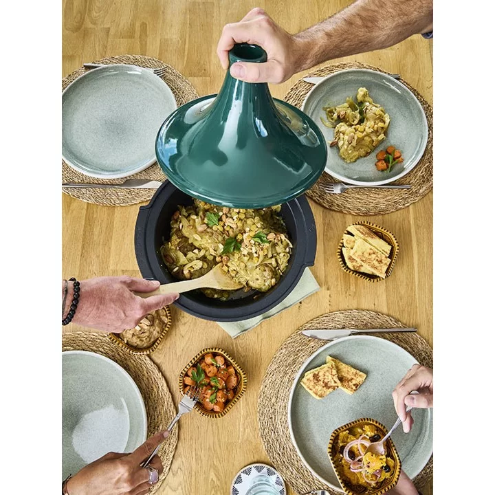 Тажин Atlas 30 см, высота 23 см, кованый алюминий +керамика, цвет зеленый, Peugeot, Франция, 62187