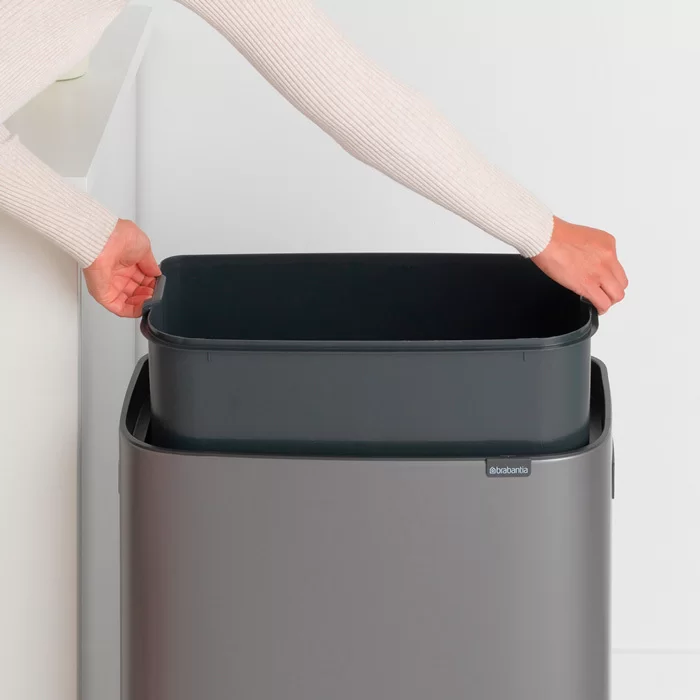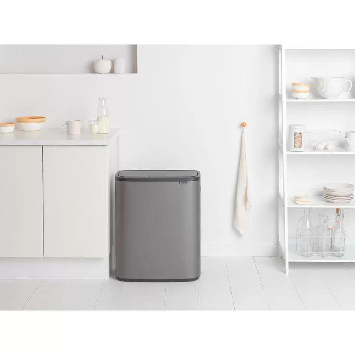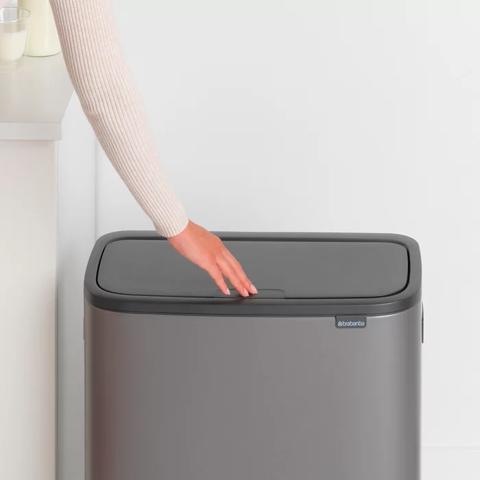 Мусорный бак Touch Bin Bo объем 60 л, 54,5x31,2x65,6 см, нержавеющая сталь, цвет платиновый, Brabantia, Бельгия, 223068